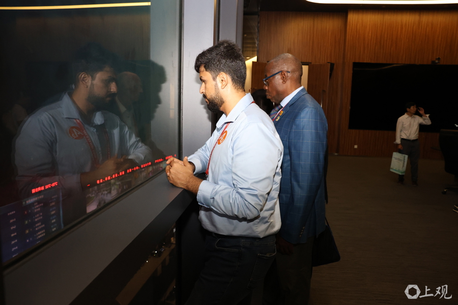 外宾们受邀来到上海申通地铁集团有限公司运营管理中心网络运营协调与应急指挥室参观。